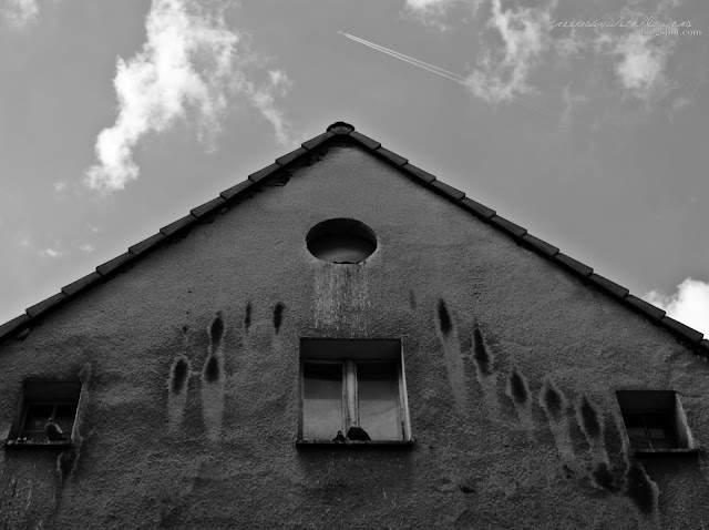 Widoczek z jednego z moich ulubionych miejsc w Łodzi - z Księżego Młyna. Mam lekki problem z opanowaniem się w robieniu zdjęć kotom, tym siedzącym w oknie też. Ciekawe kiedy mnie ktoś pogoni ;)