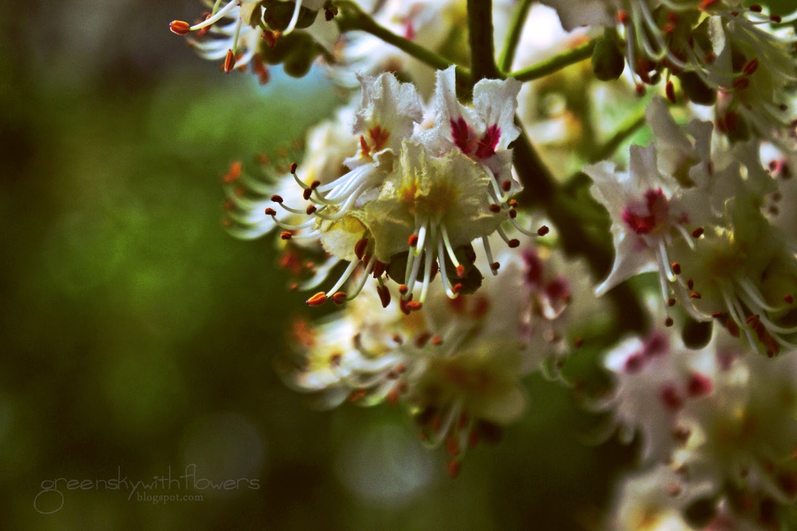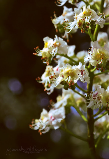 Te z moich zdjęć zakwitły w parku Staromiejskim. Tak jakos wyszło, że ostatnio często tam bywam i dobrze, bo to jedno z niewielu miejsc gdzie kwiaty kasztanowca są na tyle nisko, że dosięgne je obiektywem. A i zielone, "drzewiaste" tło jest chyba dobrym dopełnieniem :)